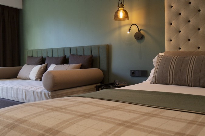 Familjerum superior: 2 personer plus eventuellt 2 personer i extrabädd. Hela rummet är renoverat (ingen utsikt mot backen).